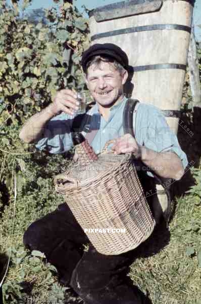 man drinking some wine on vineyard in Baden-Wuerttemberg, Germany ~1938