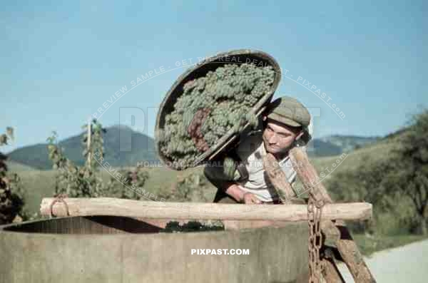 man throwing out grapes on vineyard in Baden-Wuerttemberg, Germany ~1938