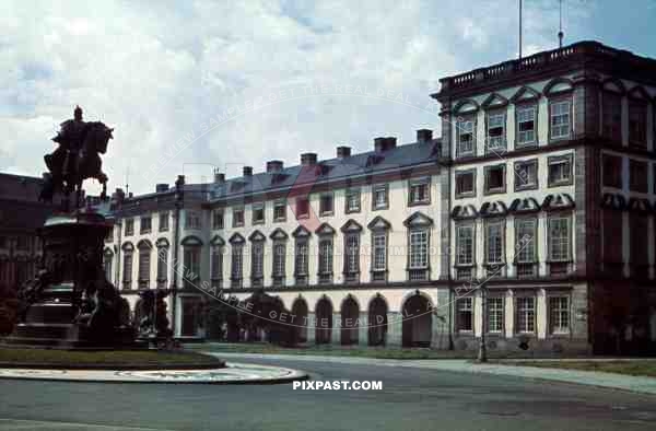Mannheim castle, Mannheim, Baden Württemberg, 1939, Reiterstandbild statue, fountains,