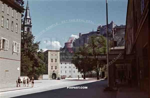 Max-Reinhardt-Platz and Hohensalzburg Fortress in Salzburg, Austria ~1938