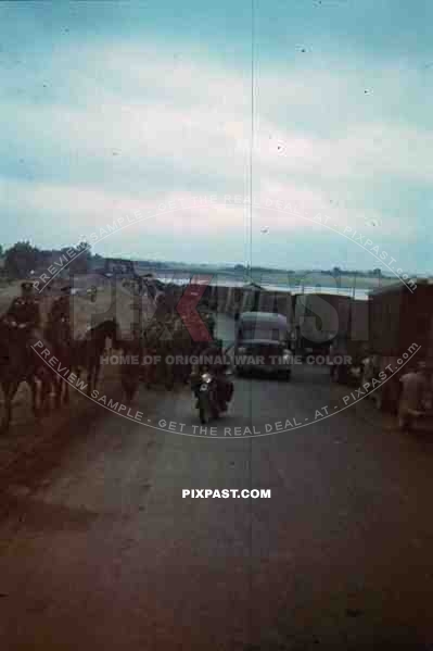 medical red-cross ambulance convoy Russian spring road 1942 kradmelder messenger motorbike trucks horse cavalry officers Leipzig