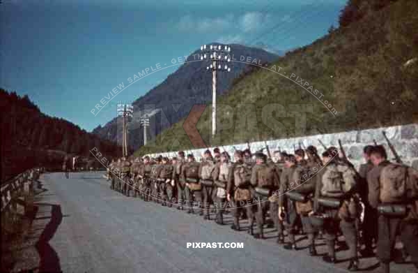 mountain troopers marching in Landeck, Austria 1941