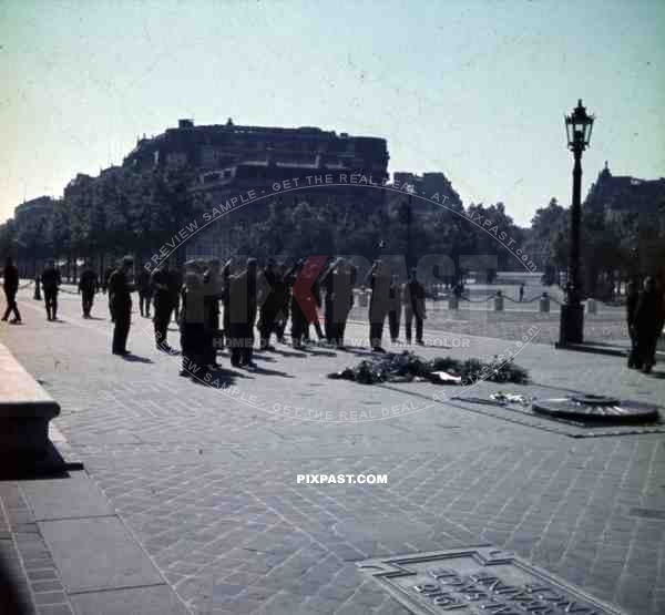 Paris france 1940 luftwaffe flak unit officers soldiers visit UNKNOWN SOLDIER memorial