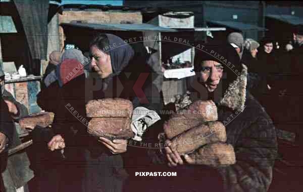 peasant women with loafs at the market, Romania 1942