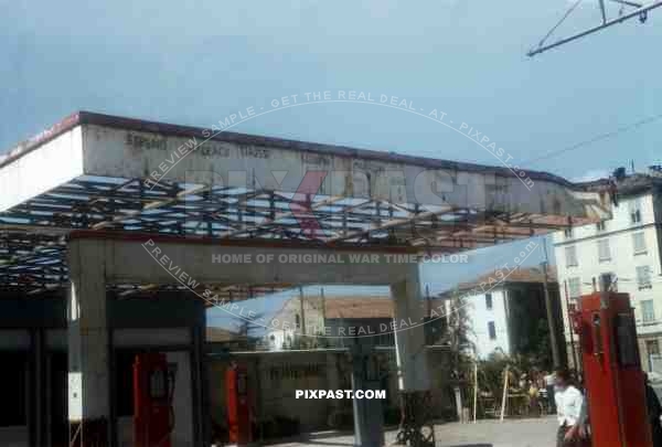 Petrol Station in Milan Italy where Benito Mussolini was hung with mistress Clara Petacci 1 month after event 1945.