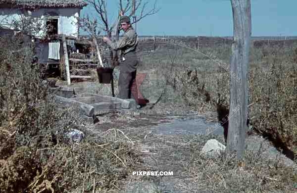 PKW Horch 901, Medium car, Don, Tschir, 1942, 22nd Panzer Division, Panzer-Aufklärungs-Abteilung 22, Fetching Water. well