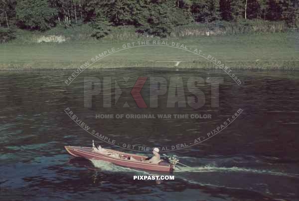 Recreational speed boat on the River Elbe near Dresden Germany 1939