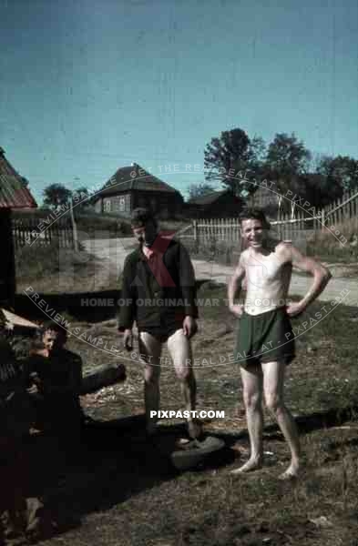 Repairing staff car flat tyre, Russian village, 10th Motorised infantry division repair werkstatt Bryansk 1941