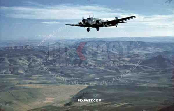 Junkers Ju52 transport aircraft flying soldiers from Italy to Africa, North Africa 1942