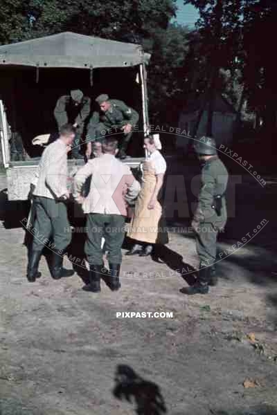 Russia german wehrmacht field hospital nurse doctor guard helmet truck lorry sick wounded 1941