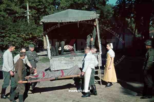Russia german wehrmacht field hospital nurse doctor guard helmet truck lorry sick wounded 1941