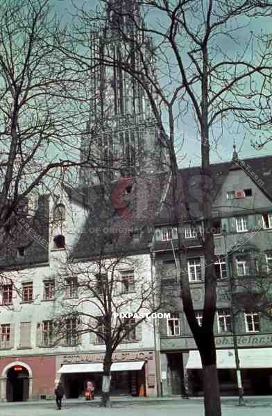 Shops and Munster Cathedral in Ulm, Germany 1939