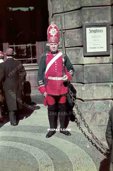 Soldier wearing period 1700 uniform. Collecting money for the Winterhilfswerk. Tag Der Wehrmacht. Zeughaus. Berlin 1940