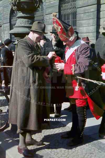Soldier wearing period 1700 uniform. Collecting money for the Winterhilfswerk. Tag Der Wehrmacht. Zeughaus. Berlin 1940