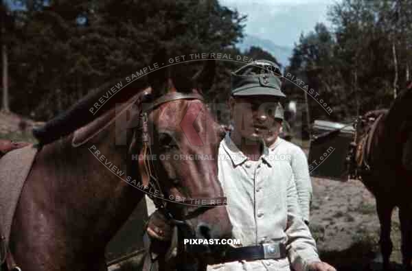soldier with packhorse in Landeck, Austria 1941, Pontlatz Kaserne
