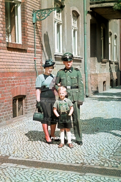SS Ober Gefreiter Golke military engineer. Munich Bavaria Germany with his son and wife 1940. Division Totenkopf