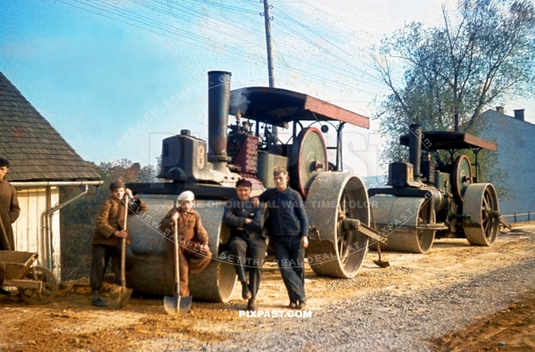 Steam. Engine. Roller. building. road. in .Poland. 1941. using. prisoner. of. war. slave. labor. children. Russian. soldiers. RAD. polen