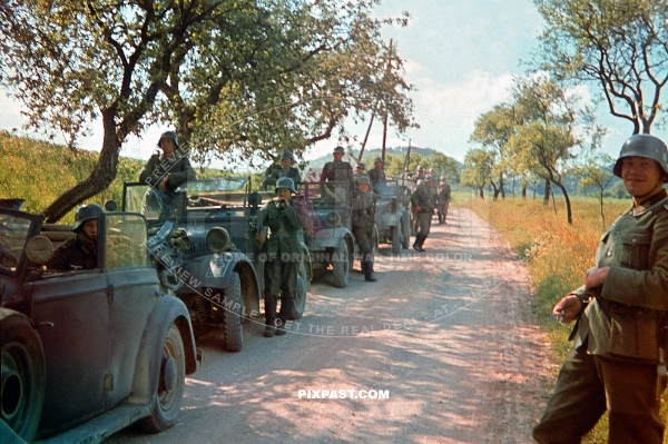 Stoewer Typ 40 Kfz.1 Jeeps in Blitzkrieg in France 1940.