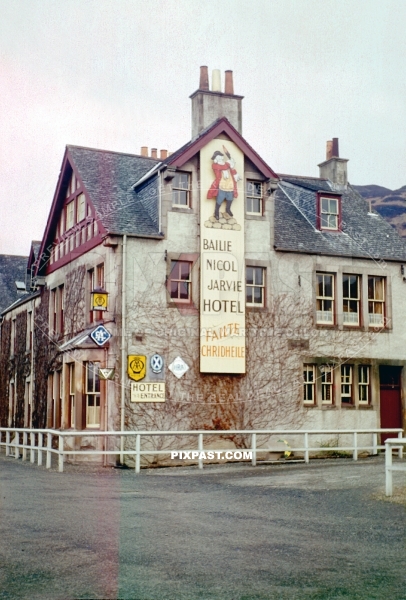 The Bailie Nicol Jarvie Hotel, Aberfoyle, Scotland. Photographed by an American army officer in his stay 1944.