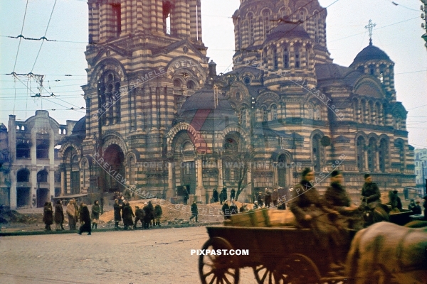 The German 297 Infantry Division passing the Annunciation Cathedral Kharkiv Ukraine. On the way to Stalingrad 1942