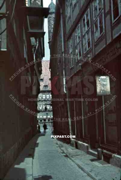 The Judenstraße (jew street) in Hildesheim near the market place and Rolandbrunnen, Germany ~1939