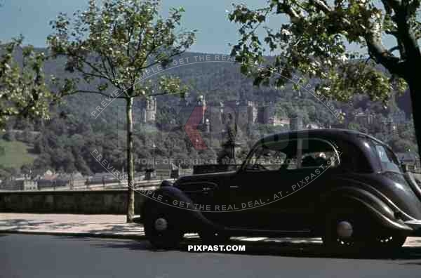 The old bridge and the castle in Heidelberg, Germany ~1940