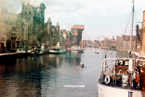 The port harbour of Reichsgau of Danzig West Prussia Germany 1939. Krantor Crane Tower