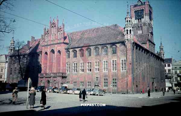 Town Hall Rathaus in Torun Poland 1939. German army trucks and cars.