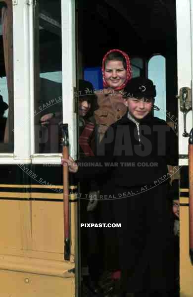 WW2 color 1940 war time Stuttgart Germany tram strassenbahn pimpf hitler youth family winter