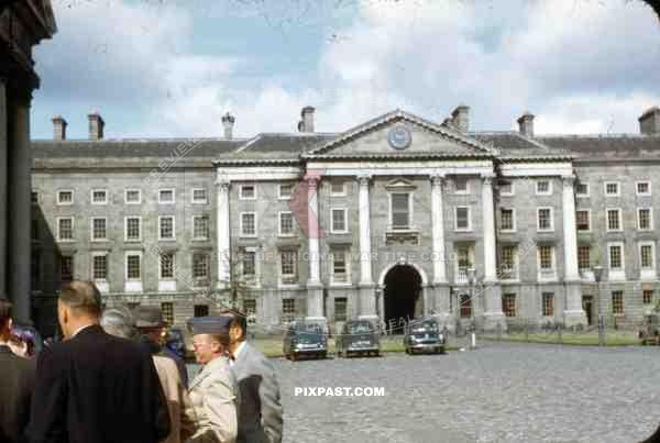 Trinity College Dublin, Ireland, 1953, American tourists inside the main square.