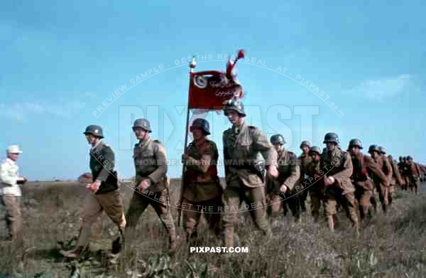 Tunisian Volunteers Parade for Erwin Rommel in Tunisia 1943. Freiwilligenbataillon Tunesien.