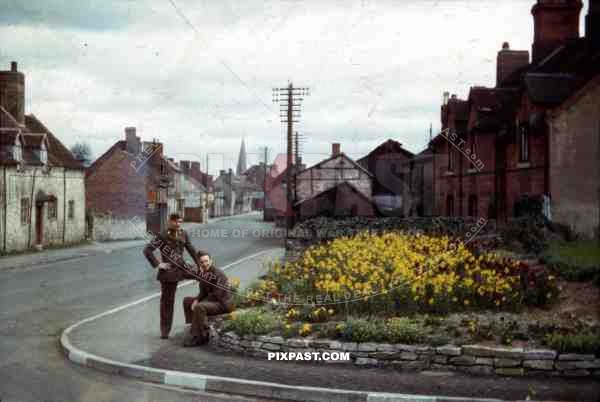 two GIs at the Vaughan Rd. in Cleobury, England ~1944