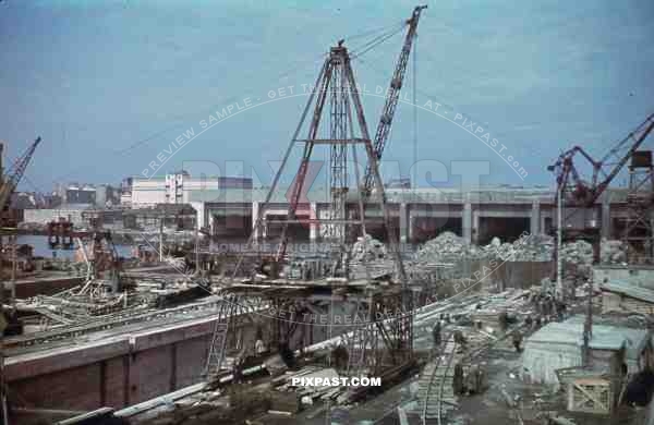 uboat kriegsmarine bunker construction cranes in Saint Nazaire, France 1942