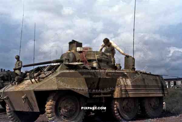 US M8 Greyhound Armoured Car Chattanooga prepare outside Rosenheim 1945. 101st Cavalry Regiment