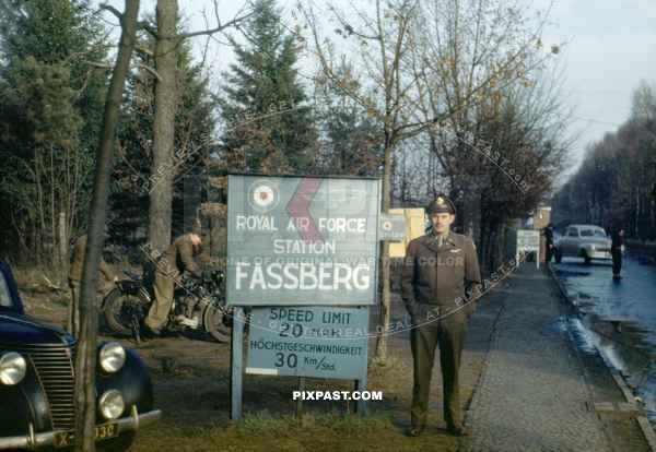 USAAF Pilot standing beside entrance to RAF Fliegerhorst Fassberg Germany. British Sector. 1948. flying coal into Berlin