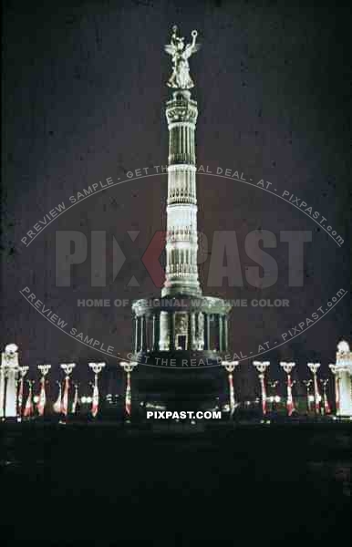 victory column ("Siegessäule") at night, Berlin, Germany ~1939