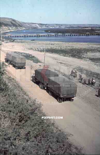 Kriegsberichter Franz Krieger, Russia, 1942, propaganda company, bus, truck, OKH, Fernlast, trailer, bridge,