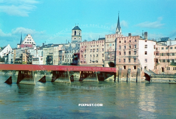 Wasserburg am Inn. Oberbayern Bavaria 1940. Wasserburger Innbrucke. Wooden bridge. entrance to old city.