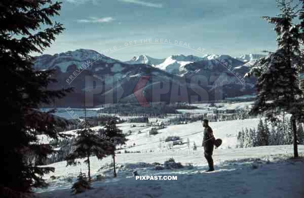 Wehrmacht officer overlooking a valley near Zakopane, Poland 1940
