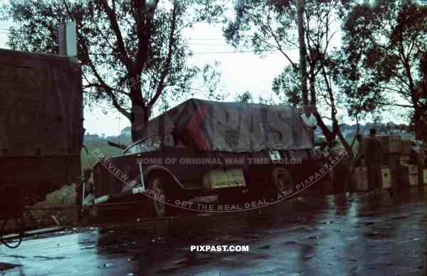 Wehrmacht red cross medical supply unit crash rescue truck lorry towed wet road poland 1940