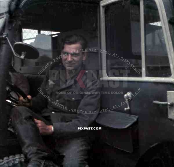 Wehrmacht soldier sitting in the car in Breaza, Romania 1941