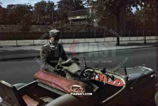Wehrmacht soldier with Tornax Rex car in Hamburg, Germany ~1941