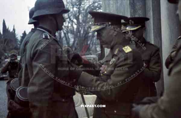 Wehrmacht soldiers being awarded in Jalta, Ukraine ~1942, Marshal Ion Antonescu,