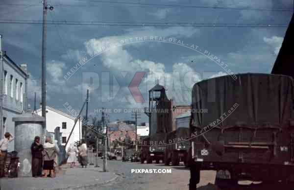Wehrmacht-trucks at the street ул. КраÑноармейÑÐºÐ°Ñ in Postavy, Russia, Belarus ~ 1943