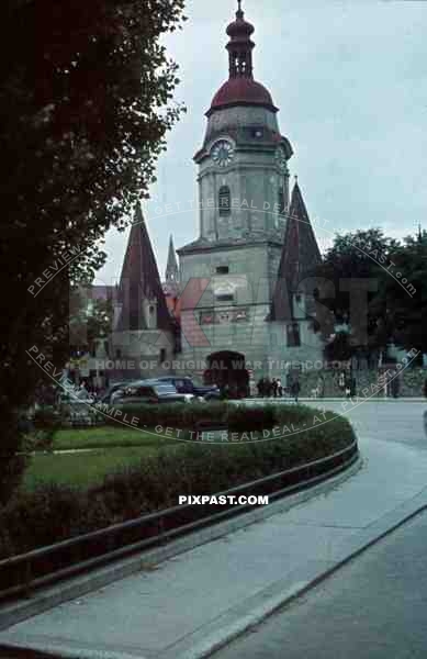 WW2 color 1939 church market Rothenburg ob der Tauber Germany car