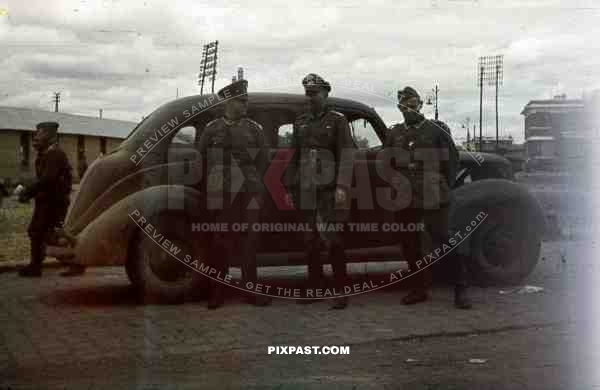 WW2 color 1942 wehrmacht officers captured american staff car belgium 1940 train station 207 Infantry Division