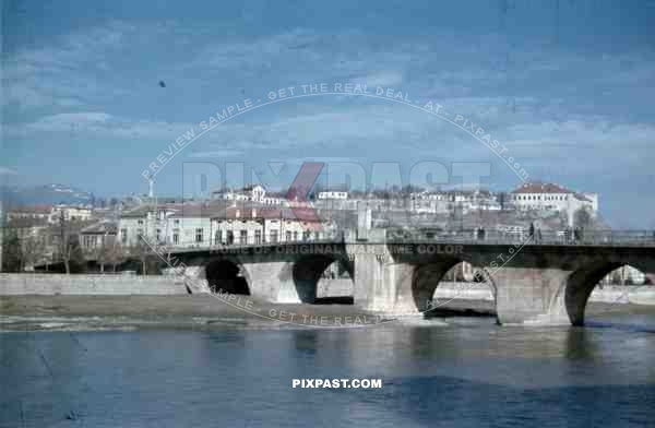 WW2 Color Belgrade Serbia 1941 Old Stone traffic bridge wehrmacht camo truck trailer