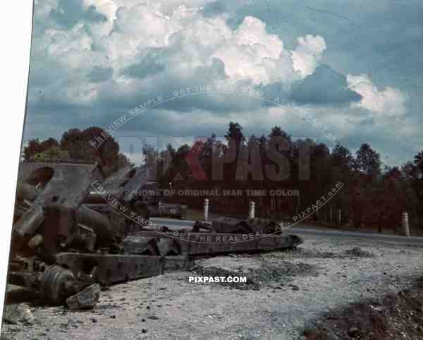 WW2 color Captured destroyed heavy russian artillery cannons Russia 1941 summer