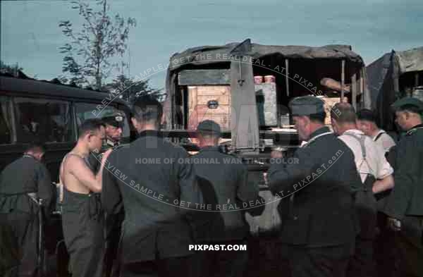 WW2 color German medical red-cross truck bus food canteen cooking russia spring 1942 supply leipzig