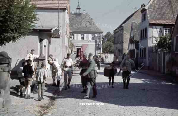 WW2 color german soldiers doing cleaning duty in white overalls wiesbaden 1939
